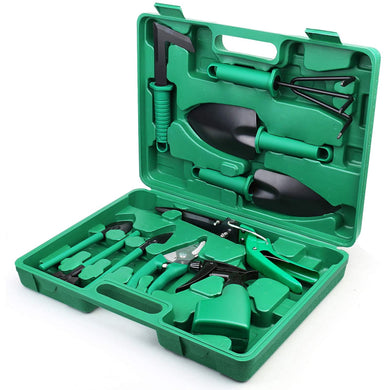 COSMONIC Garden Tools Set, 10 Piece Heavy Duty Gardening Tools with Carrying Case, Ergonomic Hand Tools, Rake, Shovel, Trowel, Sprayer, Gifts for Men, Women and Gardening Lovers
