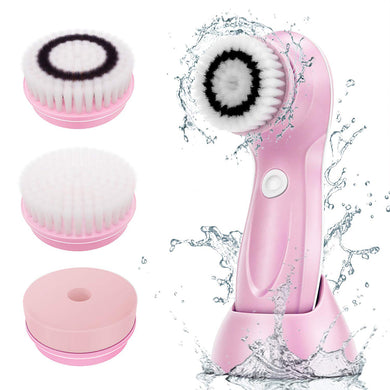 Facial Cleansing Brush Face Spin Brush USB Rechargeable Gentle Exfoliating with 3 Brush Heads Removing Blackhead Deep Cleansing Pink