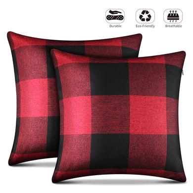 Buffalo Check Throw Pillow Covers – Set of 2 Farmhouse Decorative Pillowcases for Home Decor, Sofa, Bedroom, Car, 100% Linen Cushion Case with Plaids on Both Sides, 18 x 18 Inch