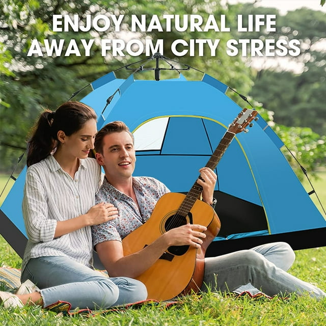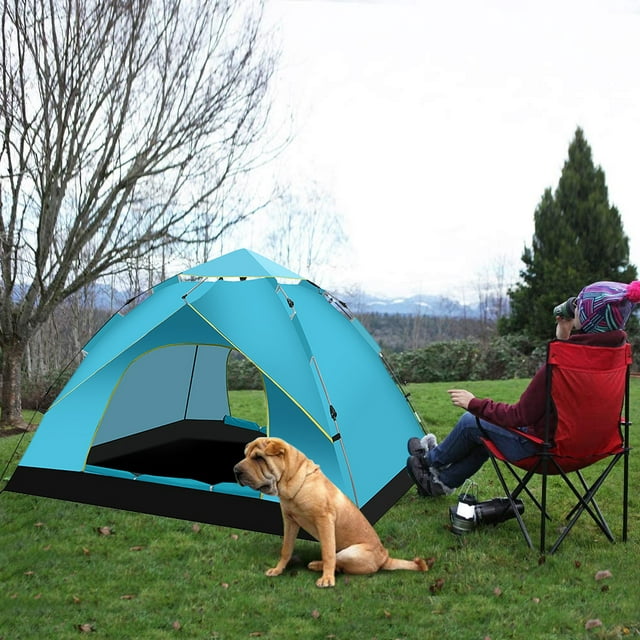 Aedavey Camping Tent 3 Person Automatic Pop Up Instant Tent Waterproof Windproof Portable 7' x 7' x 53" Lake Blue