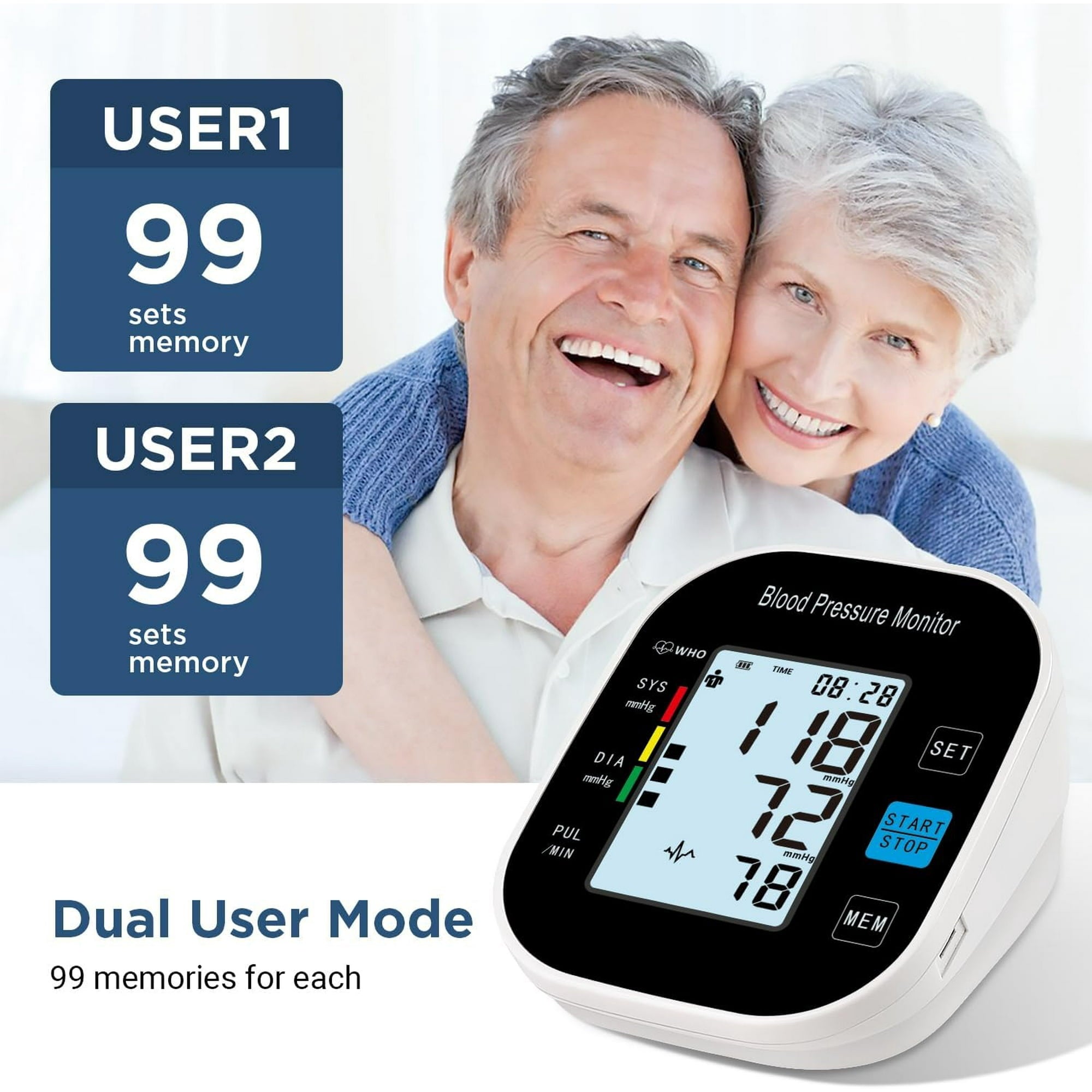 - Dual User Functionality & Intuitive Operation - Designed to accommodate 2 users, this blood pressure monitor allows for storage of up to 99 readings per user. Its intuitive one-button operation makes it easy to use for people of all ages.