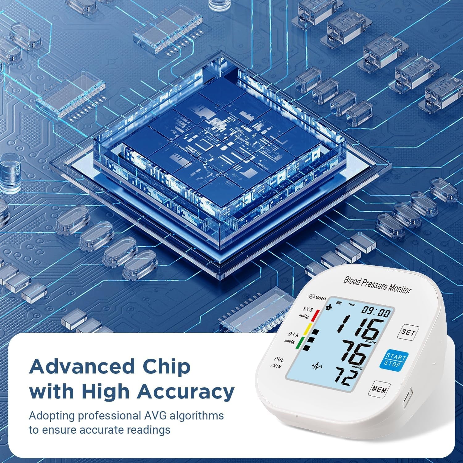 - 【High Accuracy】: This blood pressure monitor adopts upgraded imported chip, which can help users keep track of their blood pressure health. Under the correct posture and usage, it can provide you with accurate blood pressure detection, giving you and your family's health protection.