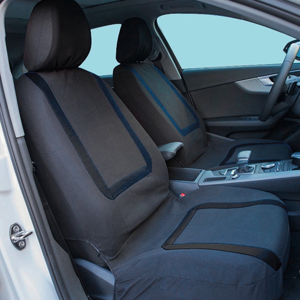 - Stylish Design: Refresh the look of your vehicle and turn some heads along the way. This full set of seat covers features a stylish two-tone design with stitched accents, making it easy to add a splash of color to your interior.