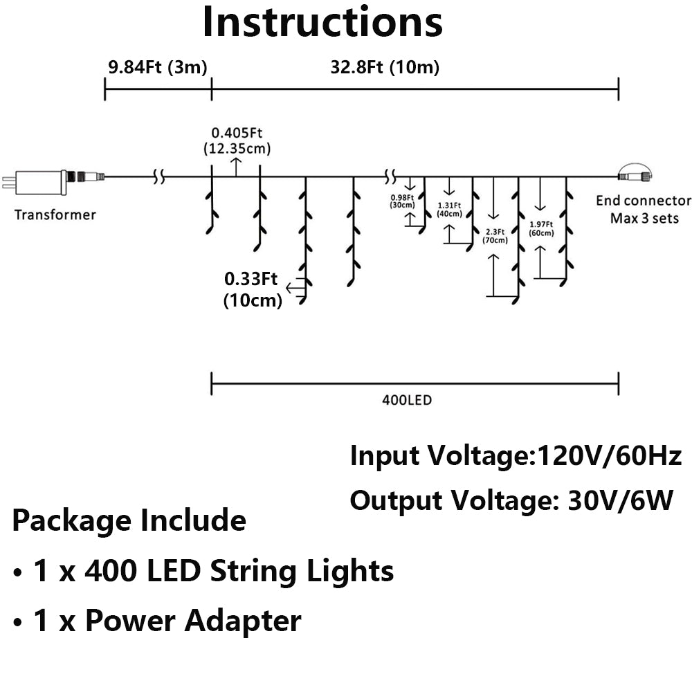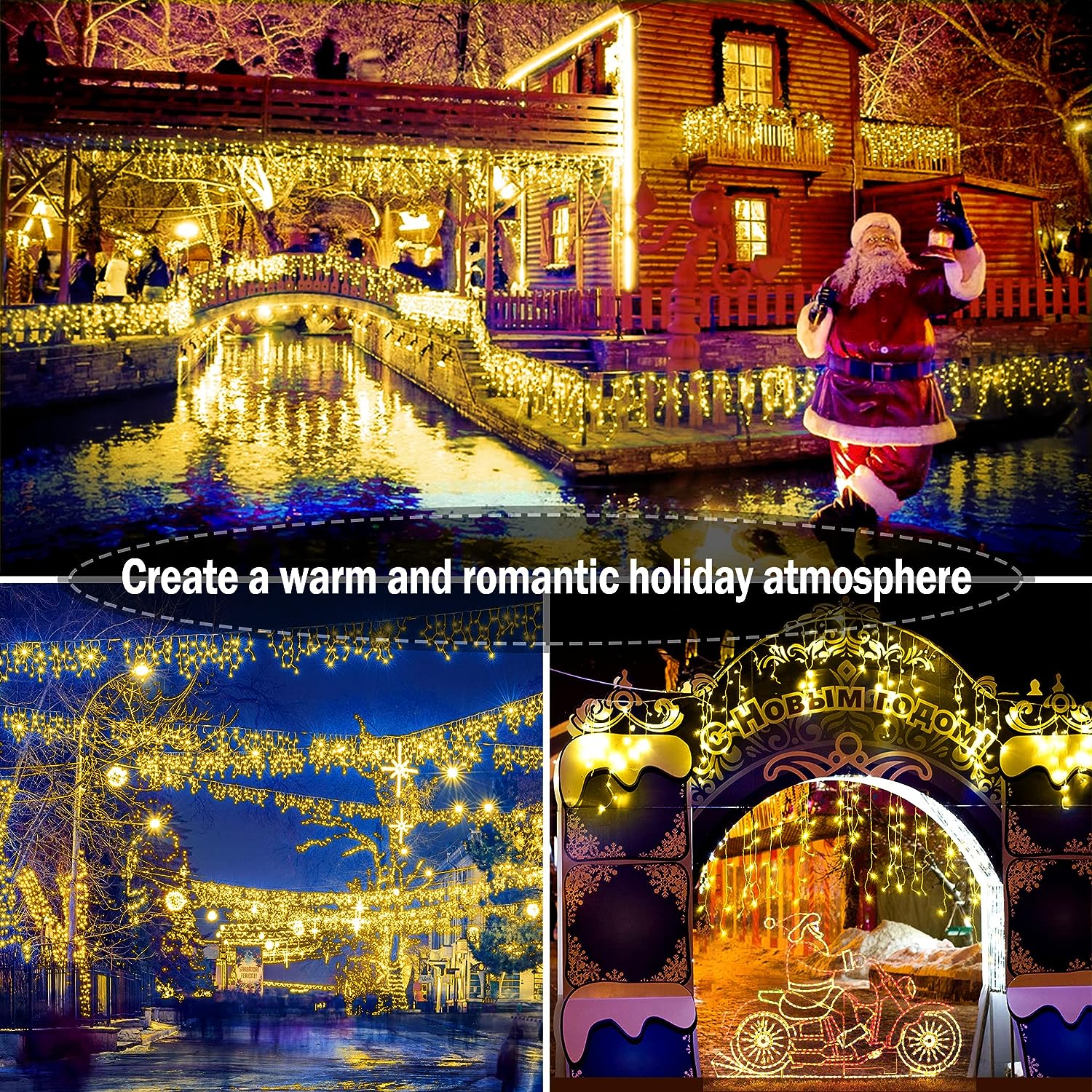 - 【Connectable & Wide application】Each light comes with a waterproof end-to-end connector to meet your needs for large and small area decor, such as Christmas decoration, Thanksgiving, Wedding, Valentine's Day, and more. You can connect max 3 sets together. Each one length is 33 feet with 400 LEDS, the max expandable length is 99 feet with 1200 LED. Light up our home this Christmas and they are the talk of our neighbors and friends.