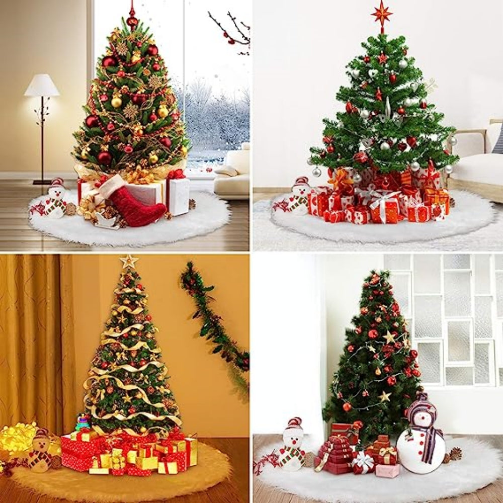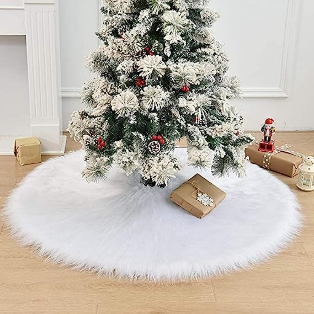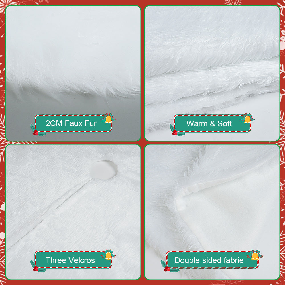 Luxury Christmas Plush Tree Skirt-- Premium Plush Christmas tree skirt 36 inch Snow white warm soft,Perfect Christmas tree skirt to dress your tree,The favorite spot for Pets in winter, comfortable texture and exquisite craft, elegant design will complement your Christmas
