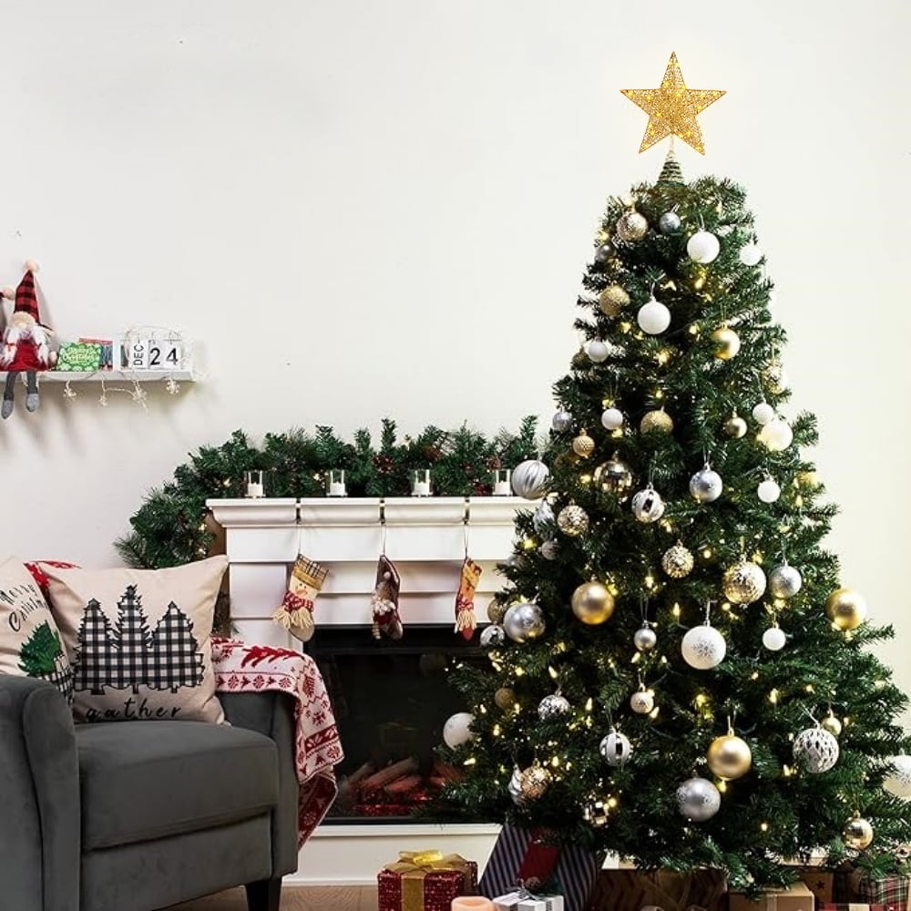 Sparkling Christmas Ornaments,Enhance your holiday decor with shimmering elegance.Features a decorative cut-out star design sparkle all day, adding elegance to this festival and making your Christmas tree dazzling and colorful.Dress up treetop nicely, shiny color gives you a good mood in Christmas, fits for Christmas themed party, home decoration,and other festive days.Key Feature