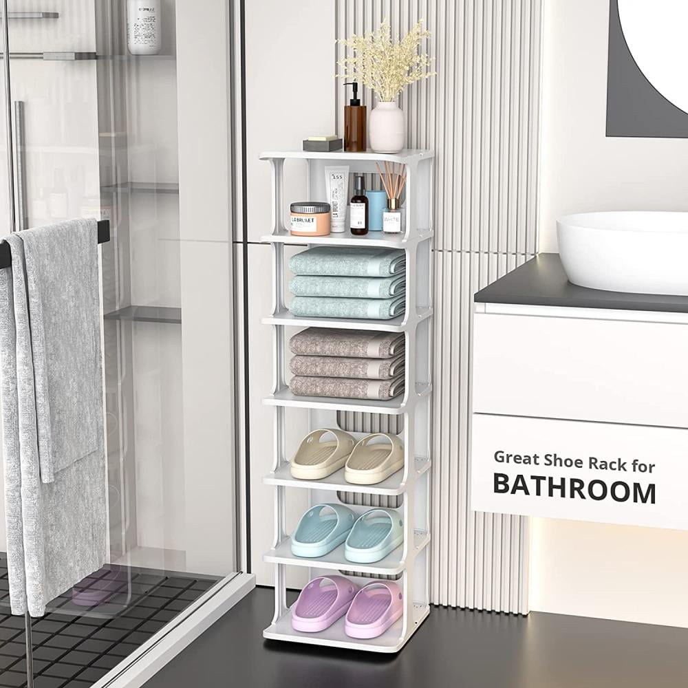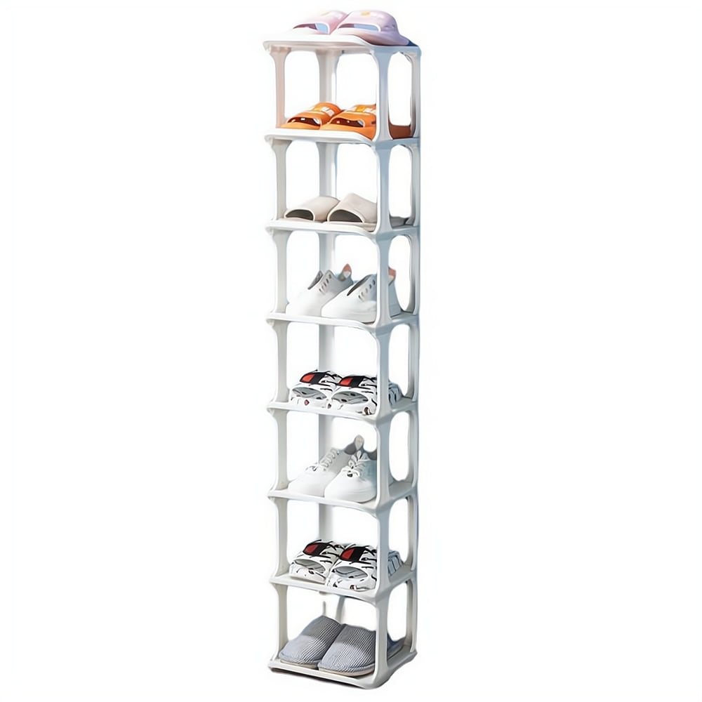 - Maximize Your Space - Make the most of your space with this compact shoe rack. 8 Pairs Of Shoes, 8 Tiers Keep shoes and boots off the floor and organized, making it a great addition to your entrance, doorway, closet, shoe cabinet, under the bed, wardrobe, living room, bathroom, bedroom, or balcony.