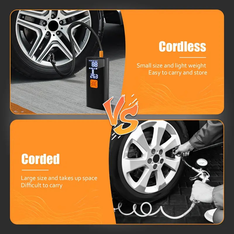 Compact and convenient A cordless tire inflator with a portable design, compact dimensions, and attractive packaging. Comes with a storage pouch for easy transportation and storage in a bike frame or backpack. Essential for daily use and road trips, it also makes a great present for loved ones.