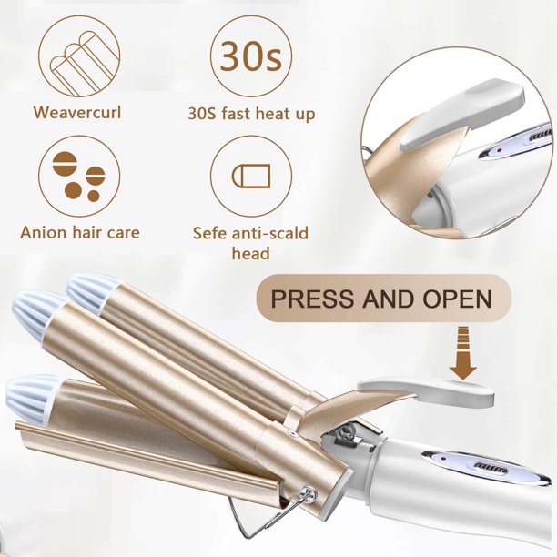 - 【Suitable for all hair types】 Three-bar curling artifact could work on all medium length to long hair, of course, long hair is the best choice. Heated ceramics produce negatively charged ions, which generate soft and shiny waves without frizz.