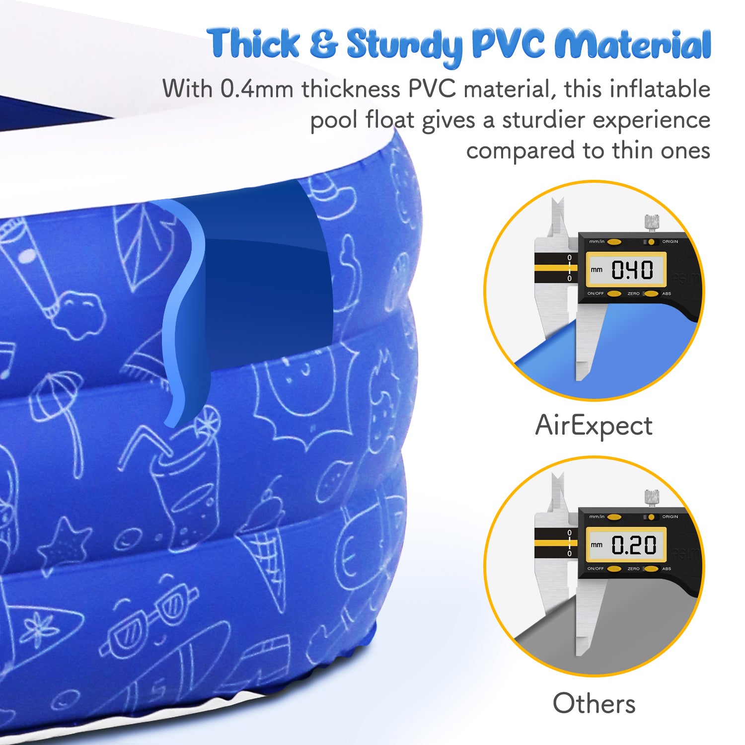 【Thick Durable Material】Enhanced 0.4mm material is thicker and sturdier than those thinner inflatable pools. 3 individual air chambers greatly add stability and let you inflate/deflate the pool quickly and easily.