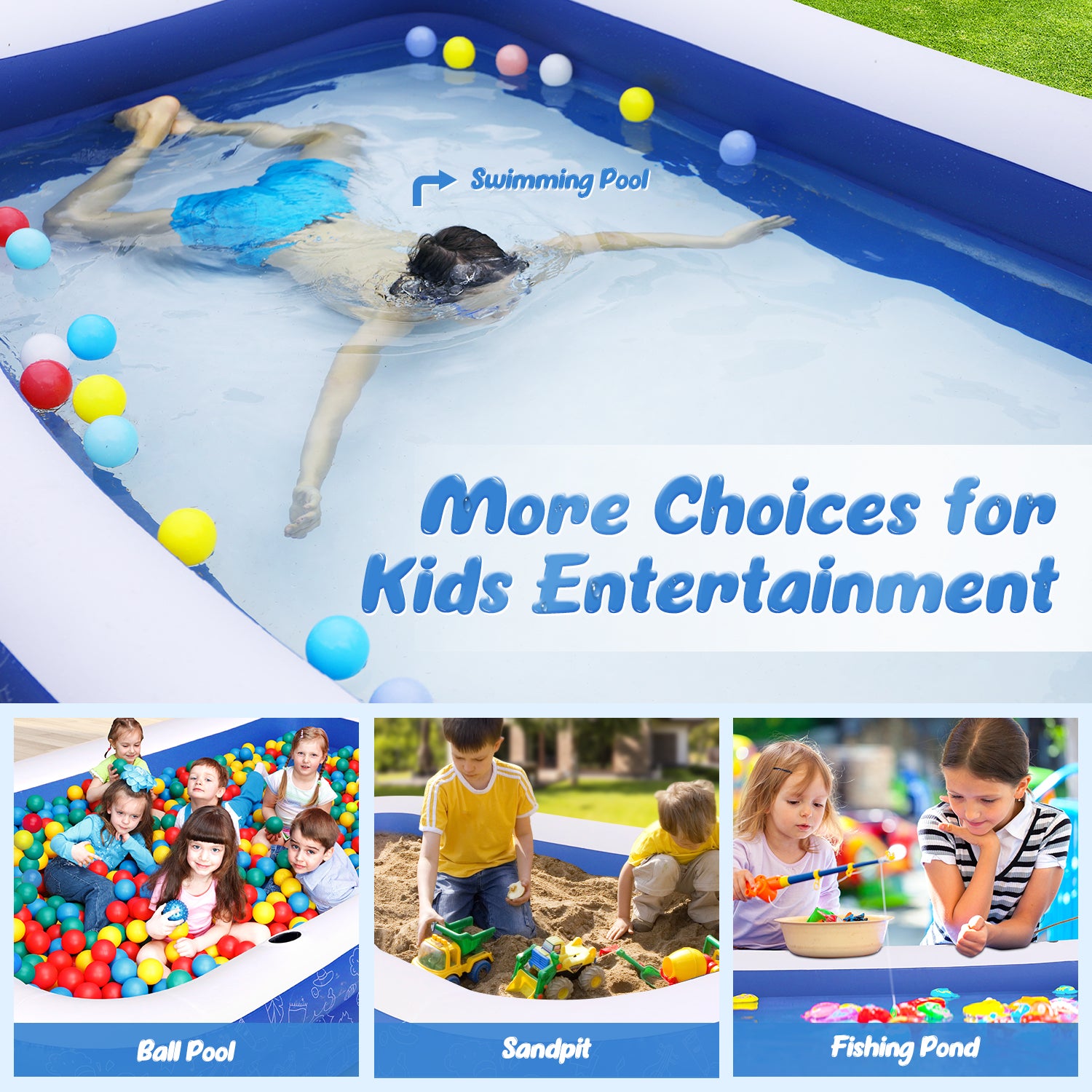 【Summer Fun for Family】Measuring 120"x72"x22", this large inflatable swim pool can hold parents and 3 kids, satisfying summer cooling need for a whole family perfectly. Enjoy a splashing pool water party with your families and friends!