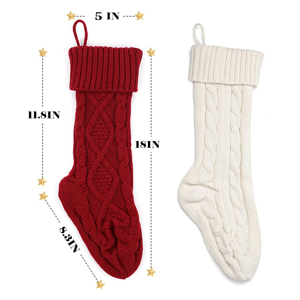 - Large Christmas Stocking:2 pack of Christmas Stockings, large size:18’’long,width:5". Christmas stocking with knitted patterns has big enough pocket for Christmas presents. White and burgundy are very popular color for Christmas Party.