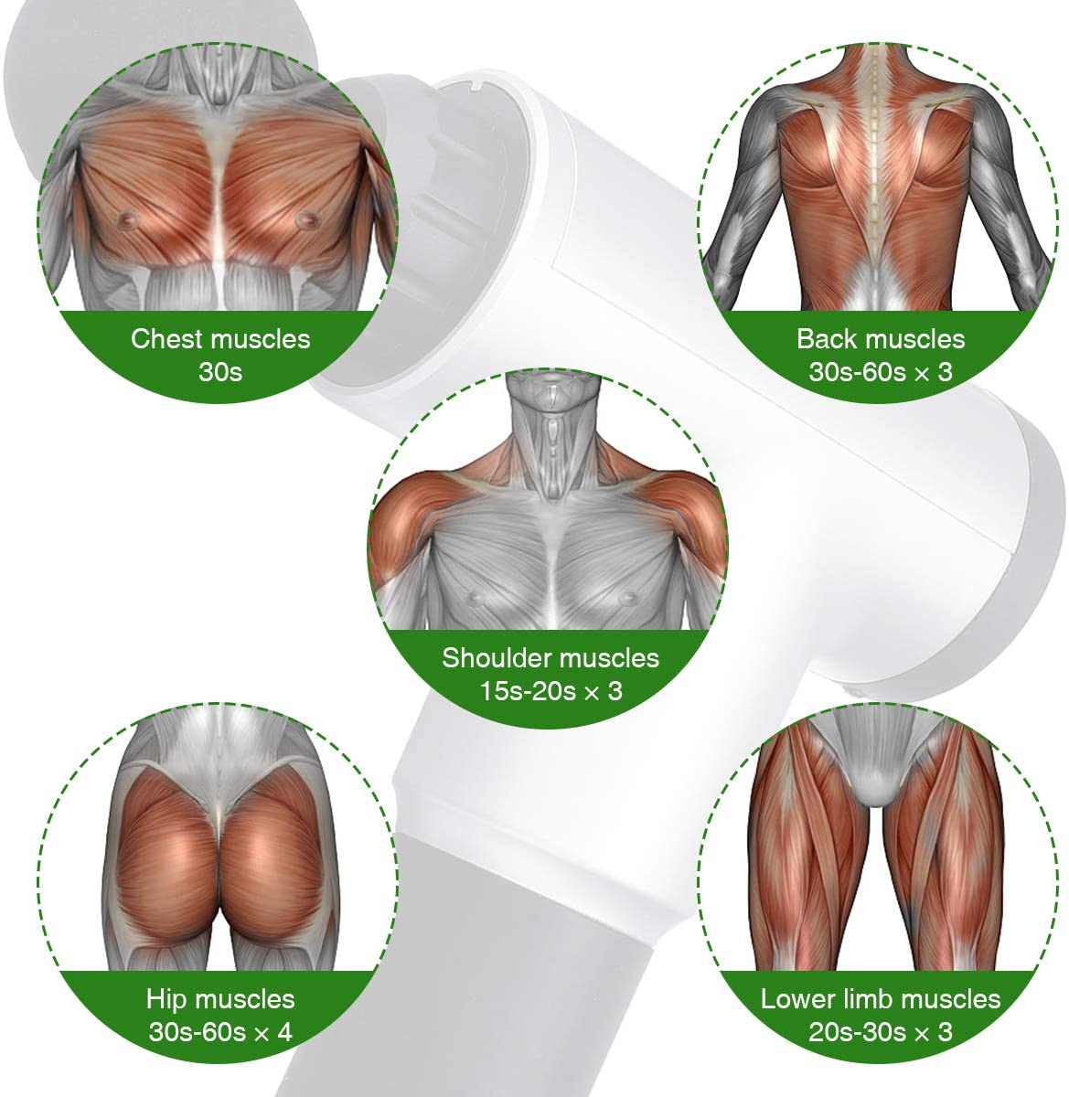 - Powerful Multi-functional Massage Gun:This massage gun is designed for deep muscle treatment, recovery and pain relief. It helps users increased blood flow, fast relief muscle pain, relief the fascia and knots and makes your full body relax.Whether you are an avid athlete or simply suffer from muscle aches, this massage gun will leave your body healthier, shapier and pain-free.