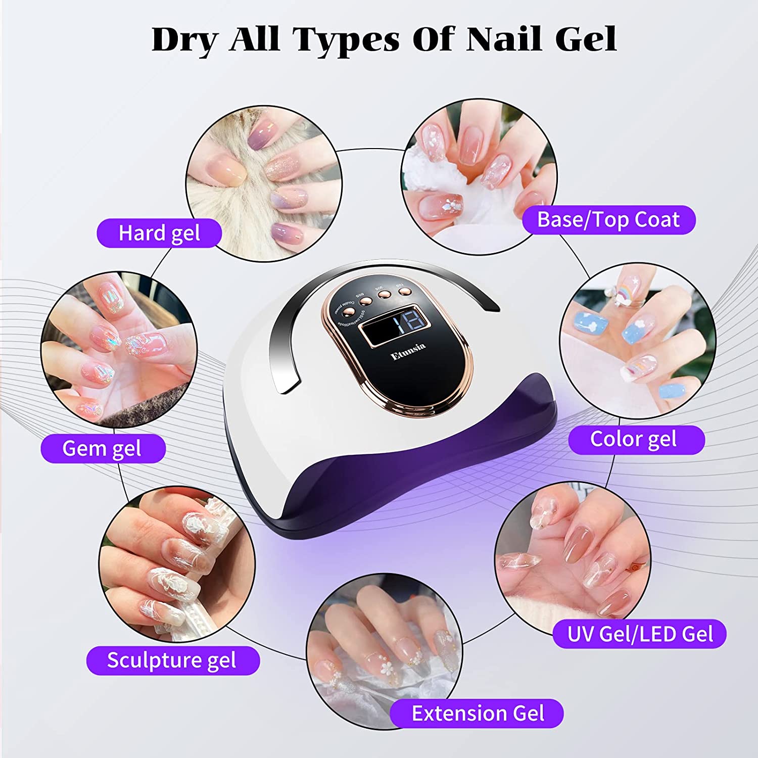 【168W high-power dual light source】- The nail dryer adopts UV + LED dual light sources, with a rated maximum power of 168 watts, which is 85% faster than other nail lamps. It has simple work and good effects, suitable for hard gel polishing and high efficiency Dry nails.
