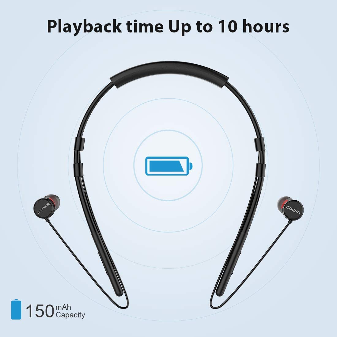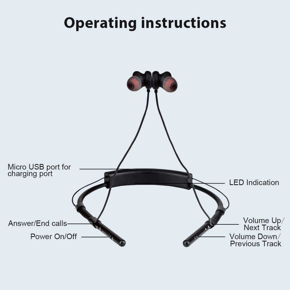 Meidong Bluetooth Headphones 10H Playtime V5.0 Wireless Neckband Earbuds with Magnetic Earbuds CVC6.0 Noise Cancelling Micphones (Black)WARNING: