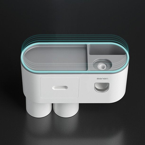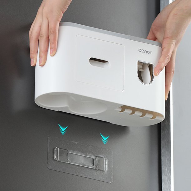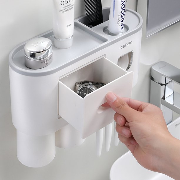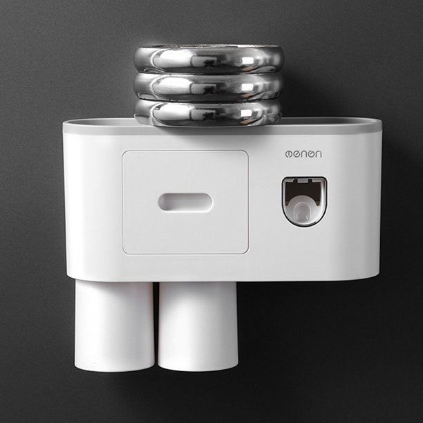 - [AUTOMATIC TOOTHPASTE DISPENSER] This toothbrush holder come with one automatic toothpaste squeezer. The dispenser squeezes the perfect amount each time, preventing waste of toothpaste and automatically assigning toothpaste to you.