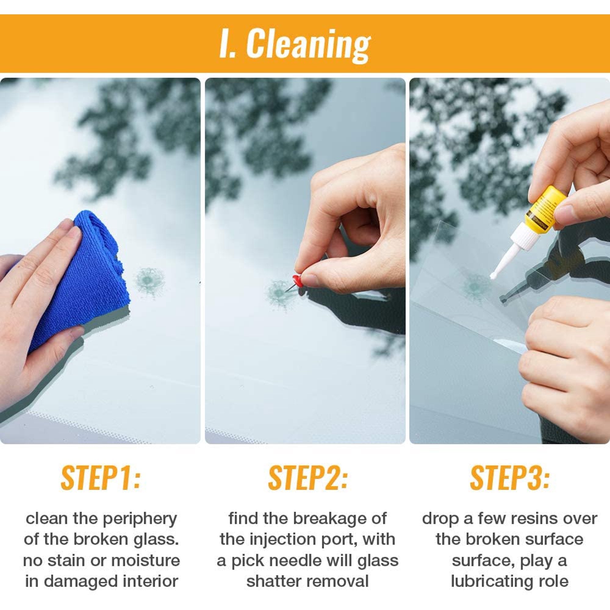 - Easy to Operate: This windshield repair kit is easy to use. Just takes quickly and effectively repair small cracks chips only in 20 minutes. Clean and dry the windshield glass surface first. then squeeze the resin into the cracks and put on the cured film. then quickly dry and solidify under ultraviolet or the sun light 5-10 mins. It is to scrape off the residual resin with a spatula. Save the time and cost for you.