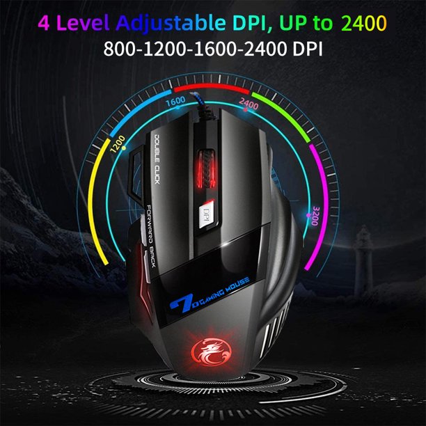 - WIRED GAMING MOUSE; built for Gaming Computers - Ergonomic Backlit Gaming PC Mouse up to 2400 DPI (user adjustable 800/1200/1600/2400 DPI). The High-Precision Sensor delivers Pinpoint Accuracy while the Gaming Grade Micro Switches ensure longevity, greater durability and extreme responsiveness, giving you an even greater edge over your competition