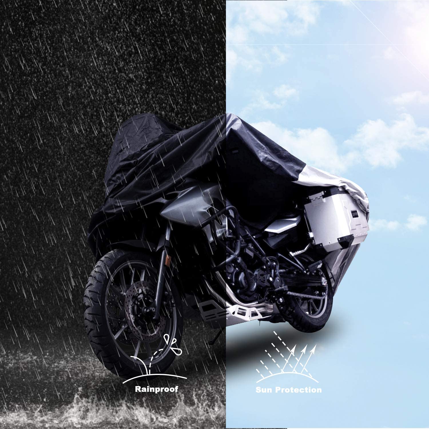 - 【Quality Materials】Waterproof motorcycle cover is made of 190T oxford material. 2 times Stretching & anti-wear performance than general nylon. The inner surface adds a waterproof coating, and the motorcycle covers is light material and durability. Easy to carry.