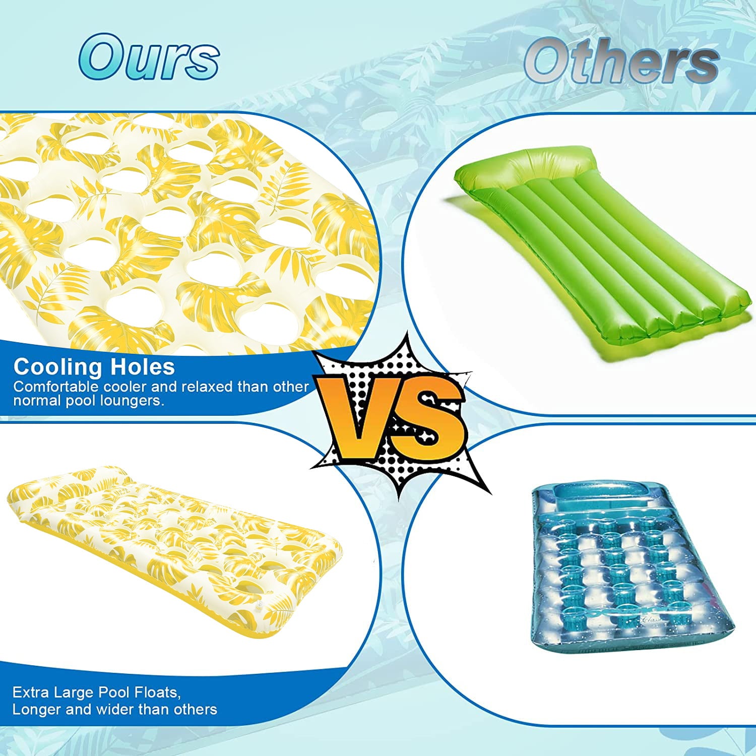 - PORTABLE TO CARRY: The pool lounge float is so lightweight that you can take it out for traveling. With double-locked valve design, it can be easily inflated and deflated. Unlike the traditional ones, ours is compact and can be folded up for easy transport and storage. More significantly, it can be folded down to the size of a handbag and packed into the suitcase for outdoor travel.