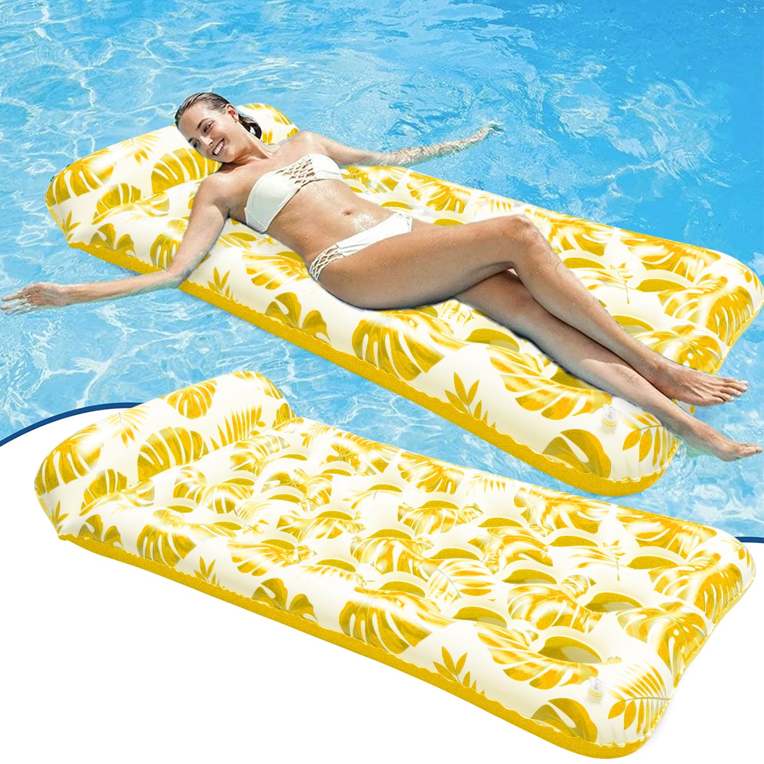 COWIN Inflatable Pool Floats Hammock 73 x 34 inches Adults for Size Water Hammock Lounge with Headrest Floating Pool Lounge Chair for Men and Women (Yellow)