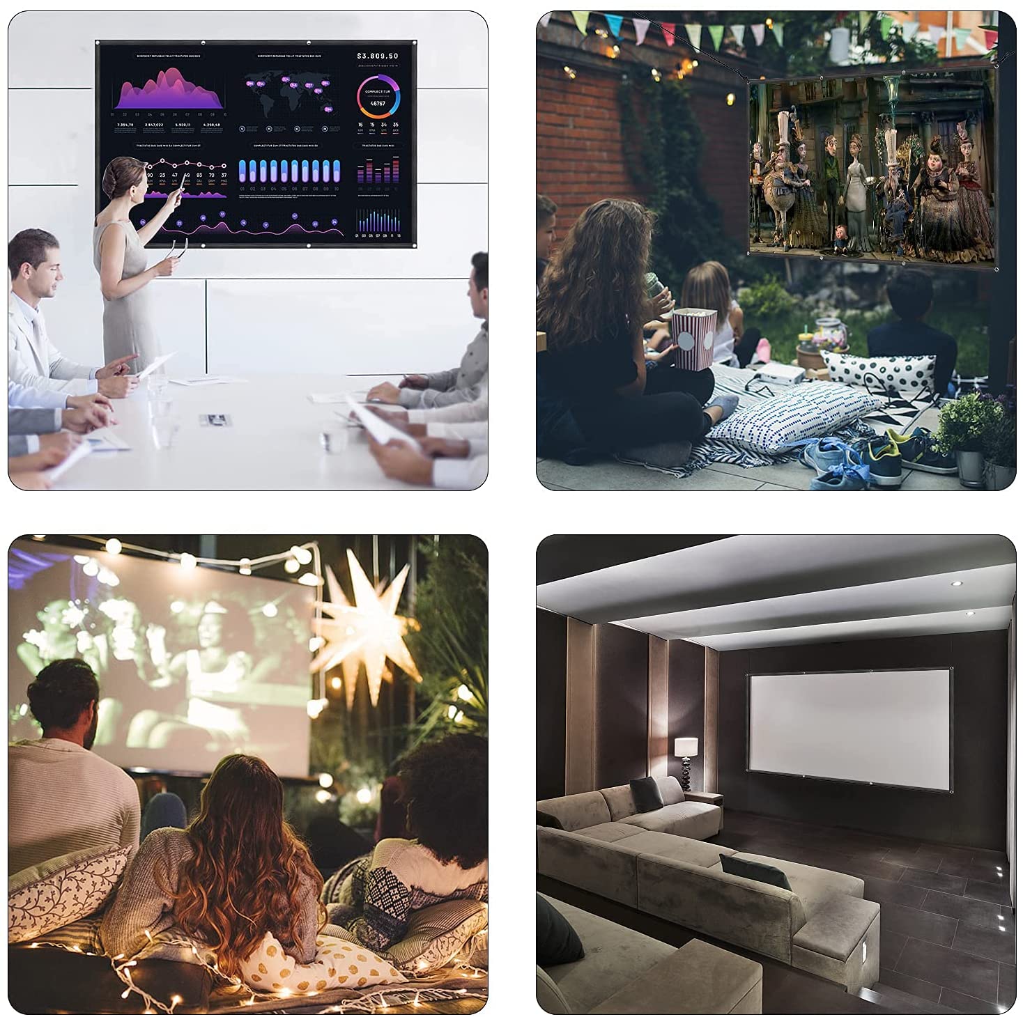 - WIDE APPLICATION- This projector screen support double sided projection, which is ideal choice for home theater movie; gaming; education; outdoor movie; football and more.