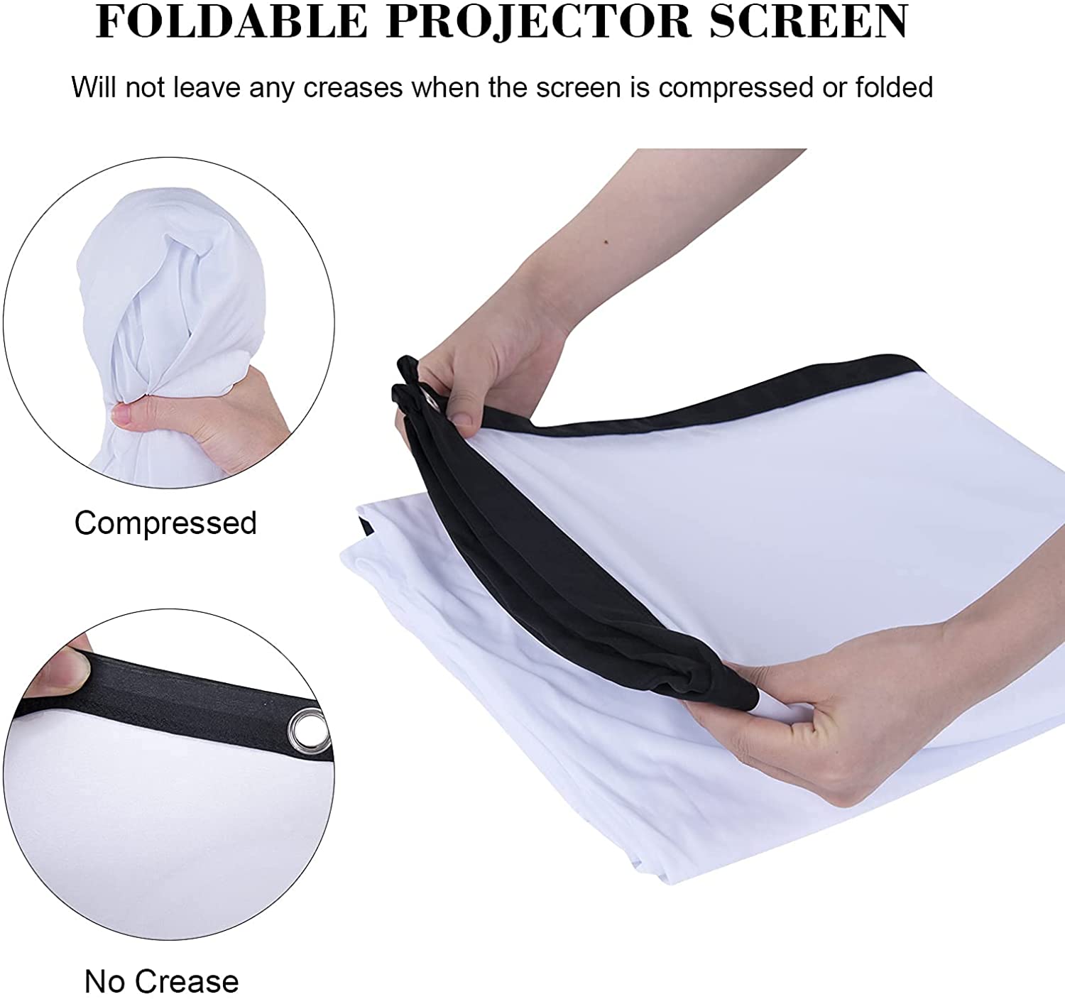 - PORTABLE AND CONVENIENT STORAGE- Our movie screen is lightweight and portable, you can fold the screen in small size and put it in your backpack or suitcase to take it wherever you want.