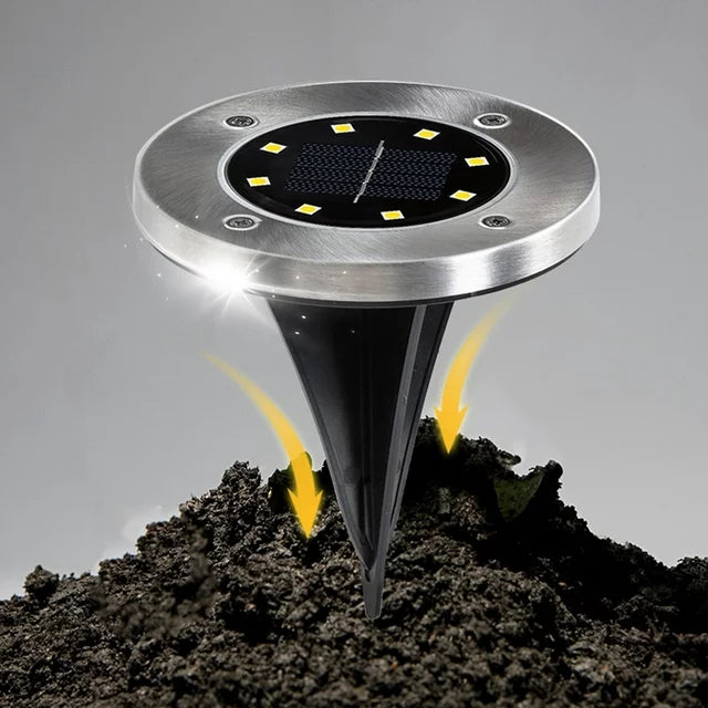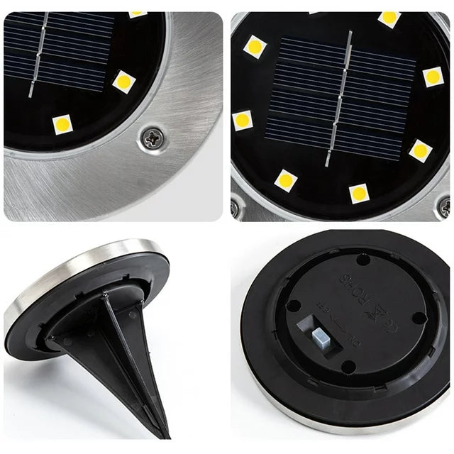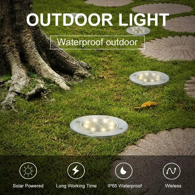 - 【Easy to Install & IP65 Waterproof】 No annoying wires or adapters needed. Our solar ground lights can be installed just in 2-3 minutes, just turn on the switch under the cap, remove the protective film on the solar panel, and push the stake into the soil. Adopted IP65 grade waterproof design, suitable for outdoor use, no worries about rain, snow, frost, or sleet.