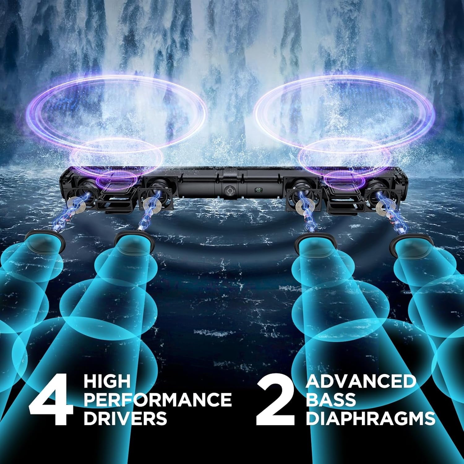 - Stereo Surround Sound: Transform your home entertainment with a powerful 90W soundbar that delivers 360° full-stage audio. Experience a cinematic soundscape with 4 advanced drivers that elevate your TV's flat audio to breathtaking surround sound. From the softest whispers to explosive action scenes, enjoy vibrant 3D audio that brings every moment to life.