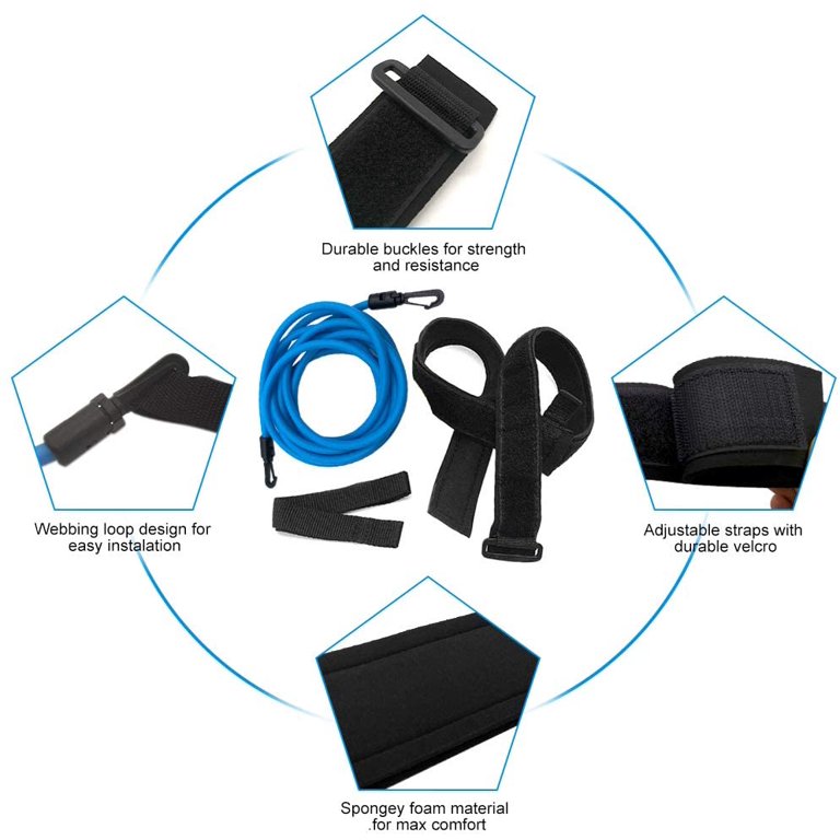 - Swimming exercise equipment: swimming tools for training, stretch cords for exercise, stretch strap loops, elastic rope cord.