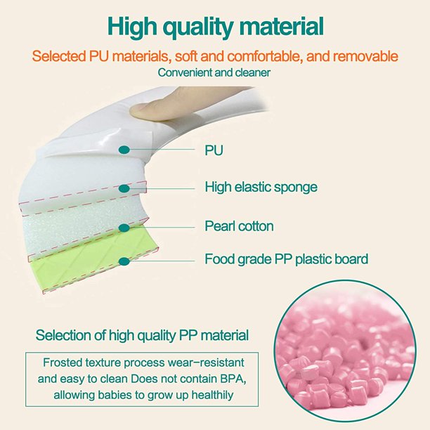 - 【Comfortable PU cushion】 Selected high-quality PU materials, soft and comfortable, and can be removed, easy to clean and hygienic, let your baby like to go to the toilet on their own, take a big step forward in growth.