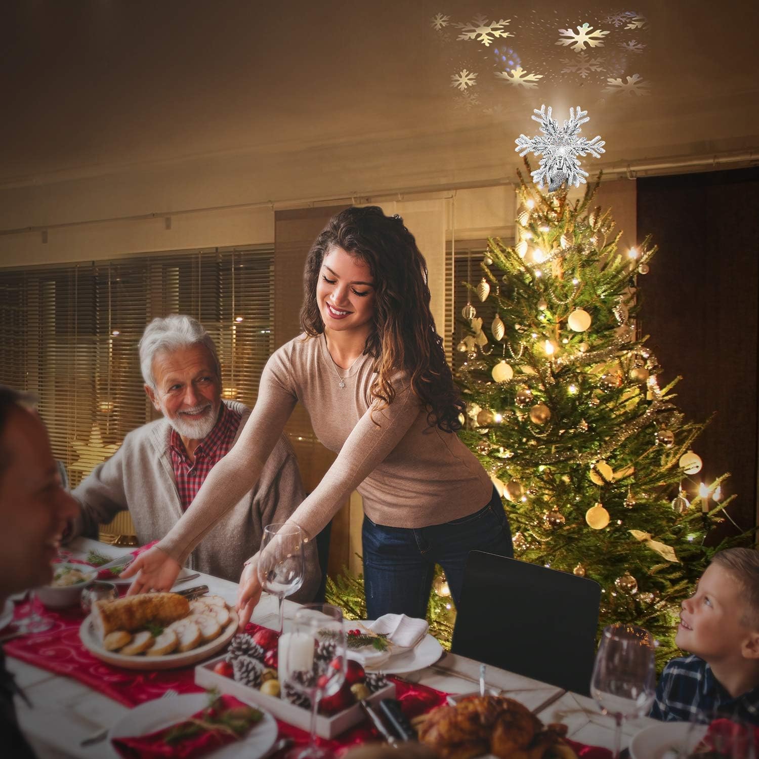 Snowflake projector tree topper