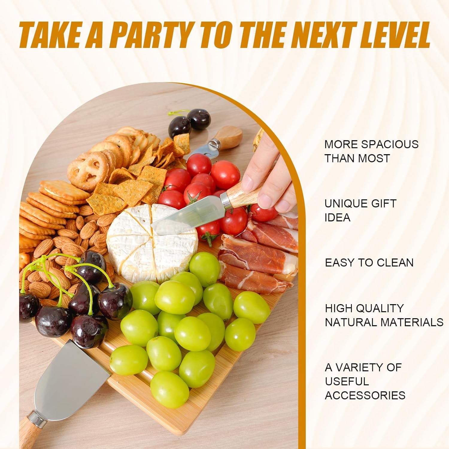 - Eye-Catching Display: Impress your guests with a stunning display on this bamboo cheese board set. Perfect for serving with roasted vegetables, fresh fruit, pickles, and olives, even the most discriminating gourmand will be impressed.